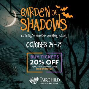 Step into darkness—if you dare. On October 24 & 25, Fairchild presents Garden of Shadows: a haunted Halloween crawl. Wander fog-filled trails, solve riddles for secret cocktails, dance in the glow-stick party, and explore a night of spine-tingling thrills. Get your tickets now.